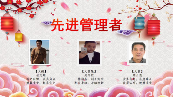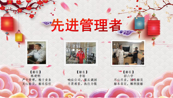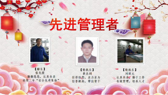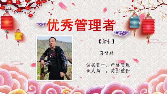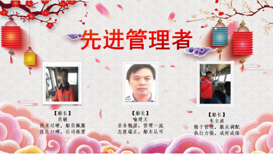 2004到2019,十五年來(lái)興盛洋公司不斷地發(fā)展壯大,公司的每一次進(jìn)步都離不開(kāi)所有人的努力。在新春佳節(jié)到來(lái)的時(shí)刻,也同樣是豐收的時(shí)刻,經(jīng)船員主管的推薦和公司的評(píng)選,本年度優(yōu)秀管理者、先進(jìn)管理者以及優(yōu)秀船員名單已產(chǎn)生。
