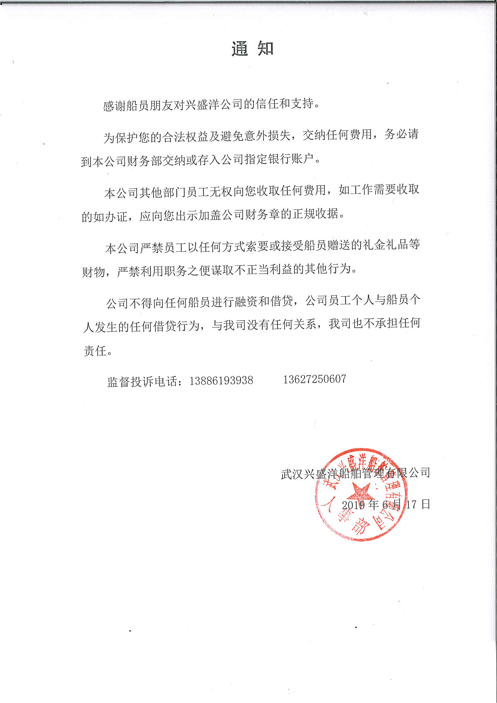 武漢興盛洋重要通知